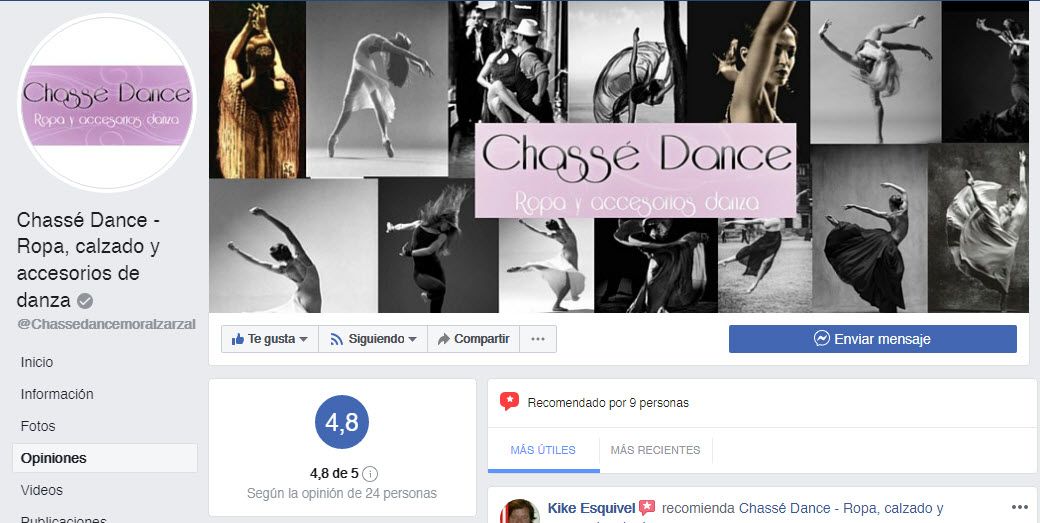 Actualmente en Facebook ChasseDance.es ha obtenido una calificación de 4,8 sobre 5, lo que indica que los comentarios de los clientes sobre la tienda son muy positivos.